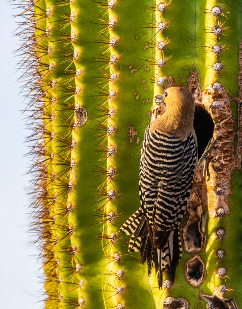 I have always been amazed the way animals are able to adapted to the environment around them. Here in the southwest desert of Arizona there are very few trees so these little creatures make there homes in cacti. Take a look!