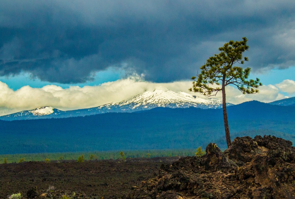 Today our friends, Keith and Janice, took Barbara and I sight seeing in central Oregon. First we traveled to the Benham Falls trail head. Once there we hiked along the Deschutes River to Benham Falls. After taking a few photos of the falls and the surrounding area, we took a short drive to the Lava Lands Visitors Center at the base of Lava Butte cinder cone. At the visitors center I hiked the Trail of the Molten Land and was treated to wonderful vistas of the nearby Cascade Mountains. This trail crosses numerous lava flows that originated from the base of Lava Butte.