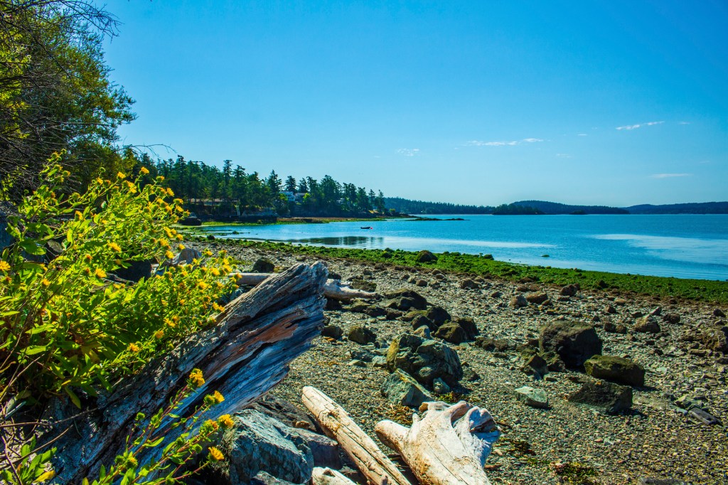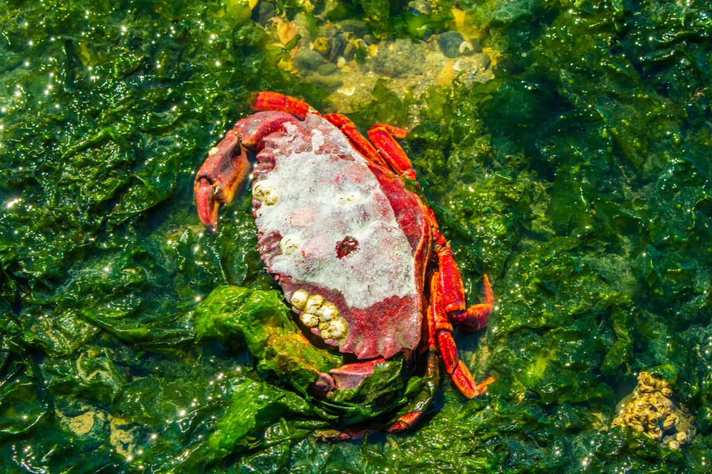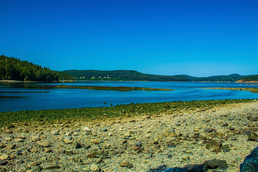 Yesterday Barbara and I headed north to an RV park near the small fishing village of La Conner, Washington. We’ll be here for two weeks. This morning while Barbara was catching up on her soaps, I took a hike along the waters edge. La Conner is located on Skagit Bay in Puget Sound, north of Seattle. To the east is Mount Baker, the northern most of the Cascade Volcanoes inside the US. This is a beautiful area. While I was exploring the shoreline, I wandered down to the tide pools to see what I could find as it was low tide. While I was looking at one of the tide pools I turned around and standing behind me was a game warden. Nice guy! I asked him if it was okay for me to be there and he said, “no problem”. We talked for about 45 minutes and then he went back to work and I continued my exploration. Tomorrow I’m going to continue exploring the area.