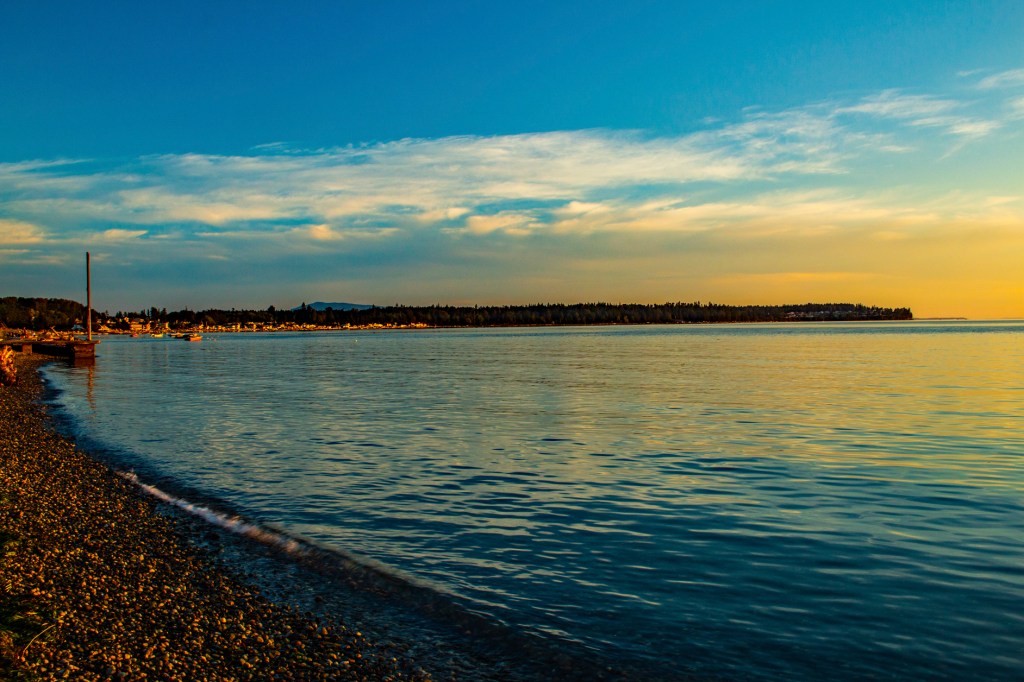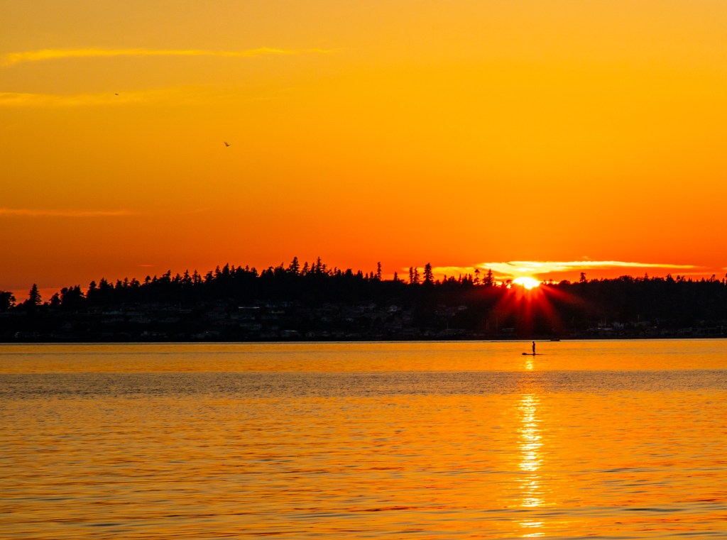 The sunset didn’t disappoint. It was very colorful. But I have to wonder if some or most of the color came from a nearby fire or maybe smog from Vancouver, Canada, to the north. It just appeared to me that there were horizontal bands of something in the air. I didn’t smell any smoke except for an occasional bit of smoke from the beach campfires, which leads me to believe what I was seeing is air pollution from nearby Vancouver. Or maybe I’m over thinking it. That’s a possibility.