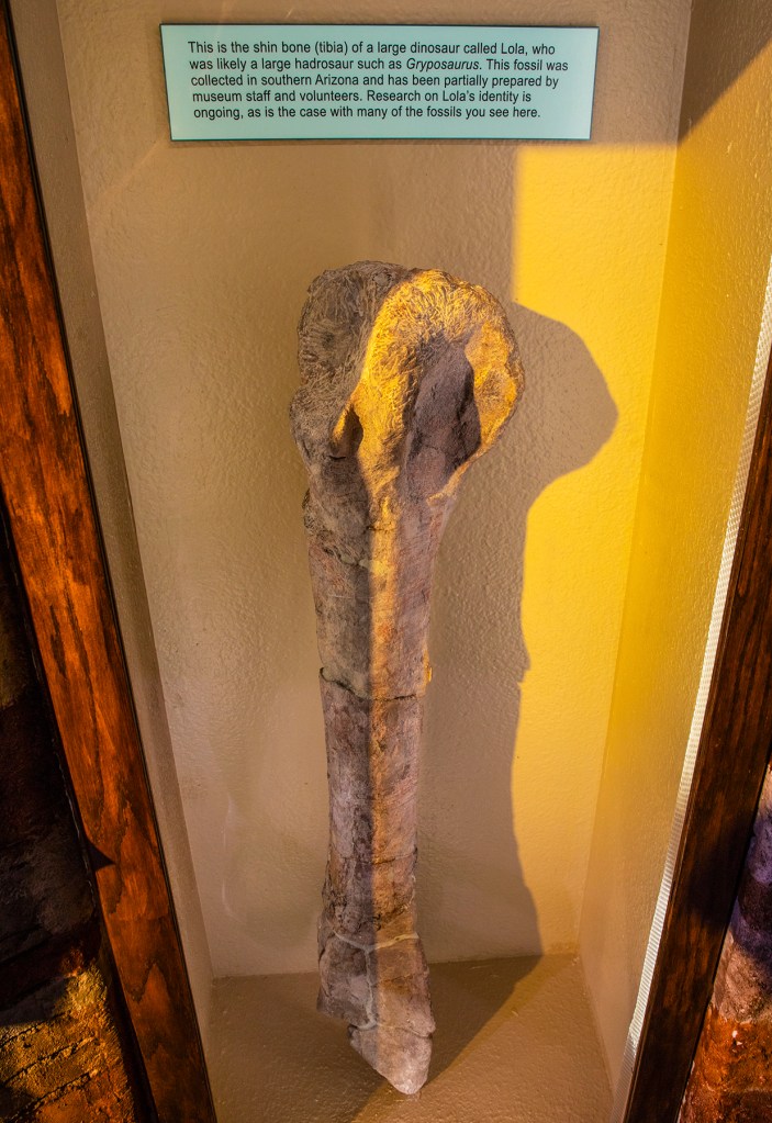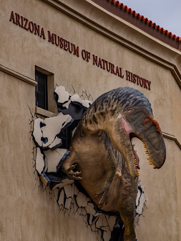 A few months ago, Barbara and I traveled from Cottonwood, AZ to Mesa to visit the Arizona Museum of Natural History. This place contains a lot of dinosaur fossils, so it is right up my alley. Something to keep in mind when you see these skeletons. Due to the age of these skeletons, it is extremely rare to find a complete skeleton. So most, if not all, of the skeletons shown here are incomplete and some of the bones seen were man made. The curators here do a wonderful job of creating the missing bones. All of the dinosaurs are between 65 million and 230 million years old, living during the Mesozoic Era, while the Wooly Mammoth and the Saber-tooth Tiger, lived during the Pleistocene Epoch, AKA The Ice Ages, which began 2.6 million years ago and ended approximately 15,000 years ago. Based on geologic history, the earth will likely begin another Ice Age in approximately 85,000 years. But not to worry, as most of us likely won’t be around at that time. Dodged a Bullet!