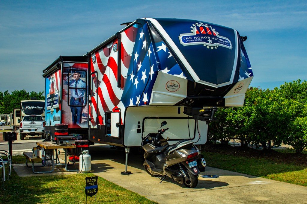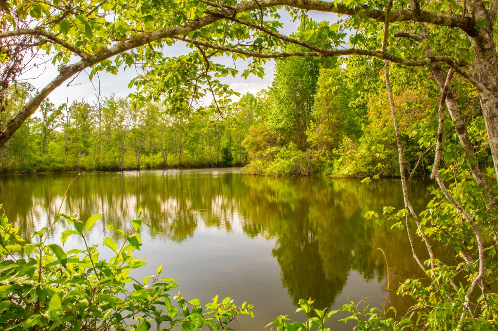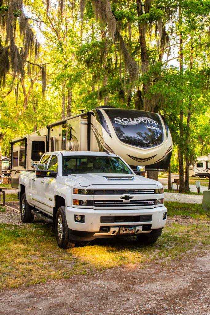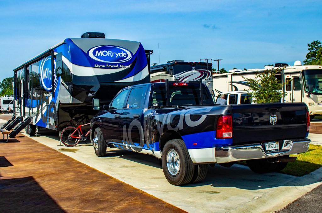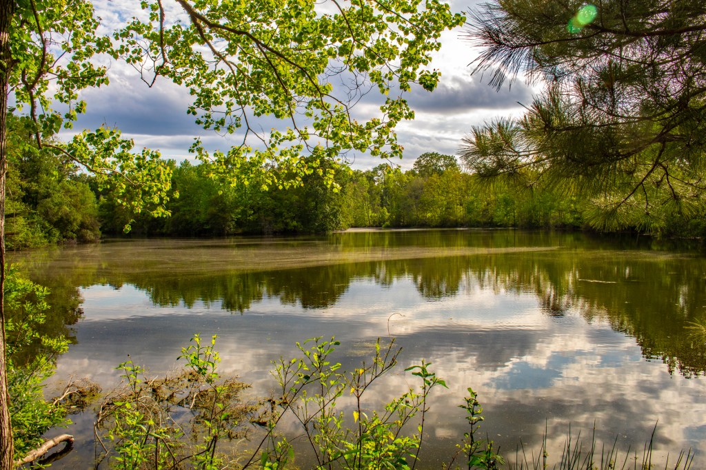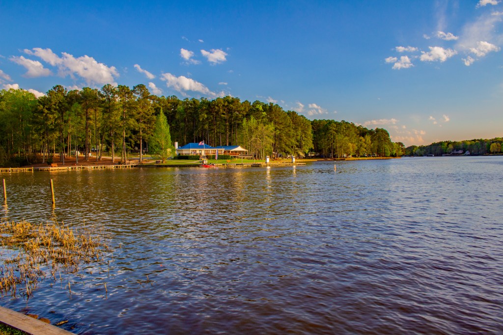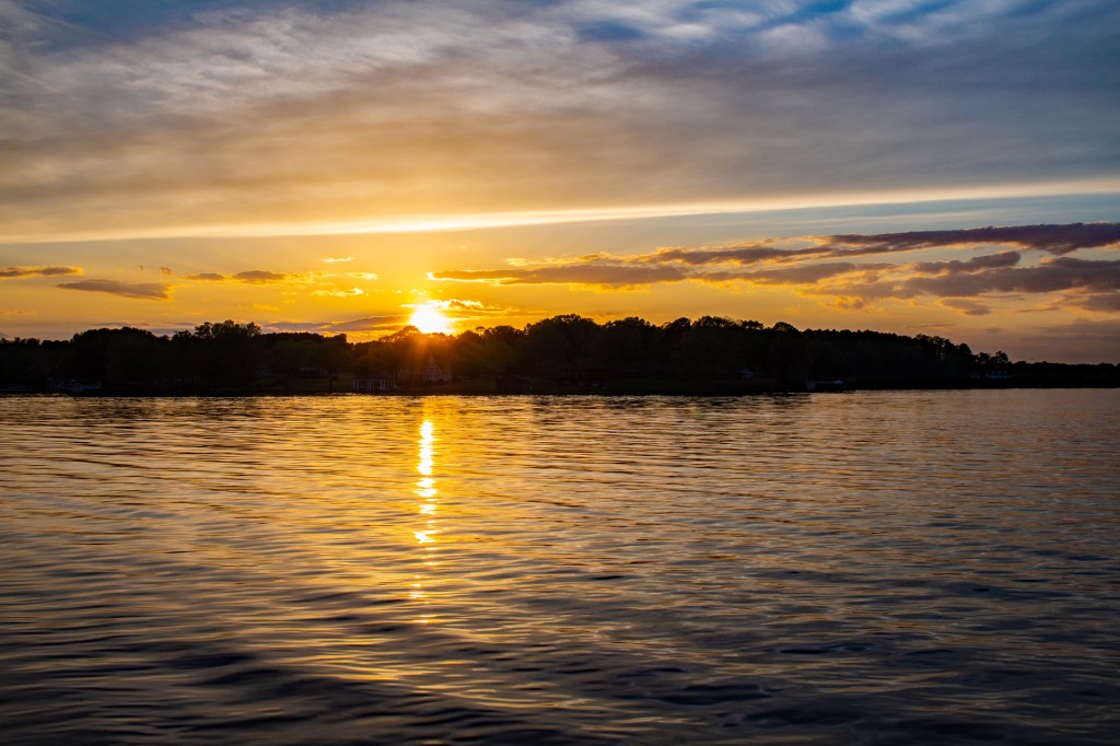 Over the past few days Barbara and I have traveled north from Brunswick, Georgia to Lynchburg, Virginia to the Lynchburg Thousand Trails RV park. If I had to rate this place on first impressions, I’d give it an F. When we arrived yesterday it was raining and the roads in this park are terrible. This place is covered with red clay and now it is all over our truck and trailer. I just had both washed a week ago, but you couldn’t tell it by looking at them now. In a couple of places I had to put the truck into 4WD just to keep from getting stuck in the mud. However, last evening after the storm passed and things began to dry out, I walked down to the lake and watched the sun go down. I enjoyed an awesome sunset. Take a look!