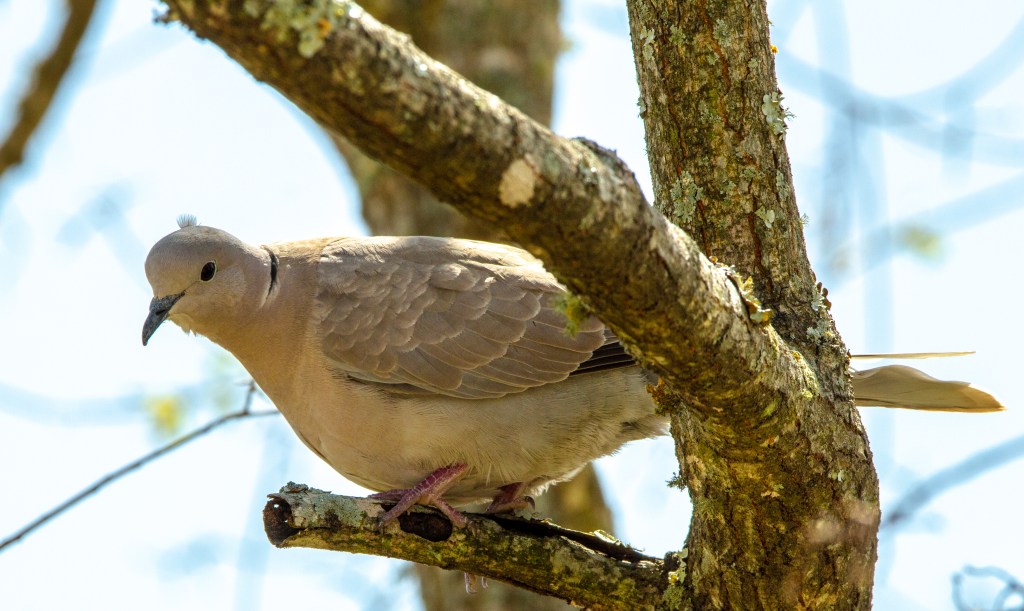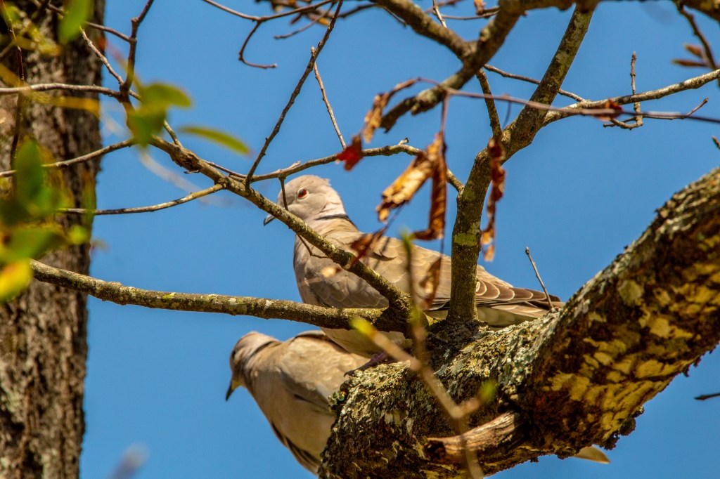 At the RV park where we are staying there are bird houses located throughout. Yesterday we saw a cardinal but by the time I got my camera it had flown away. This morning there were two doves in the trees above our trailer. Take a look!